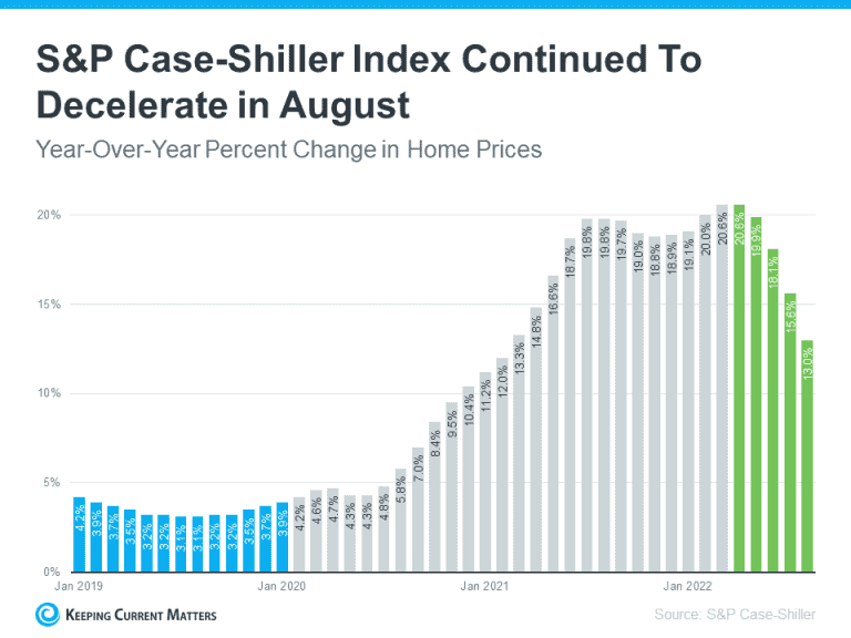 This deceleration is happening because higher mortgage rates are moderating demand, and as a result, easing the buyer competition and bidding wars that previously drove prices up.